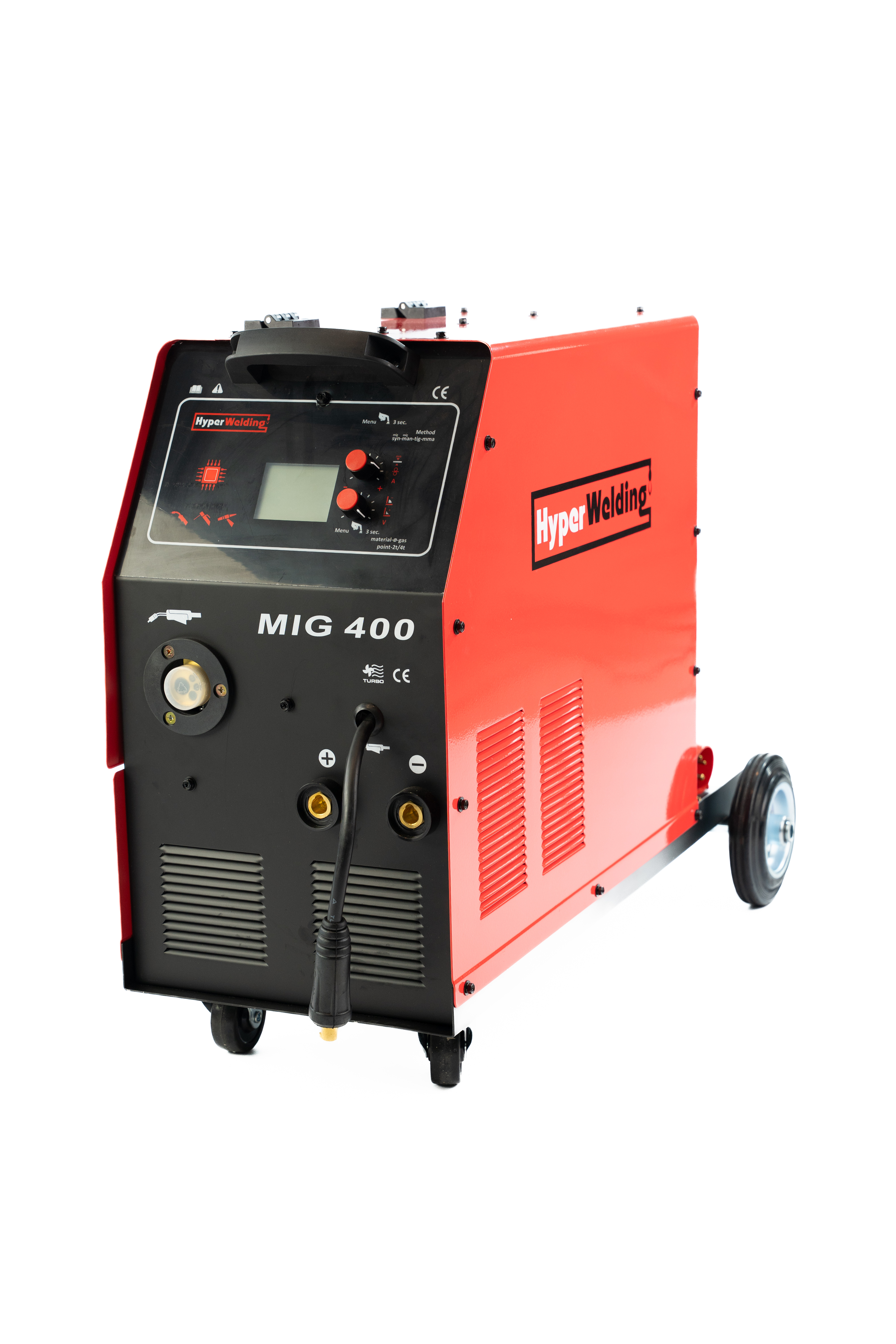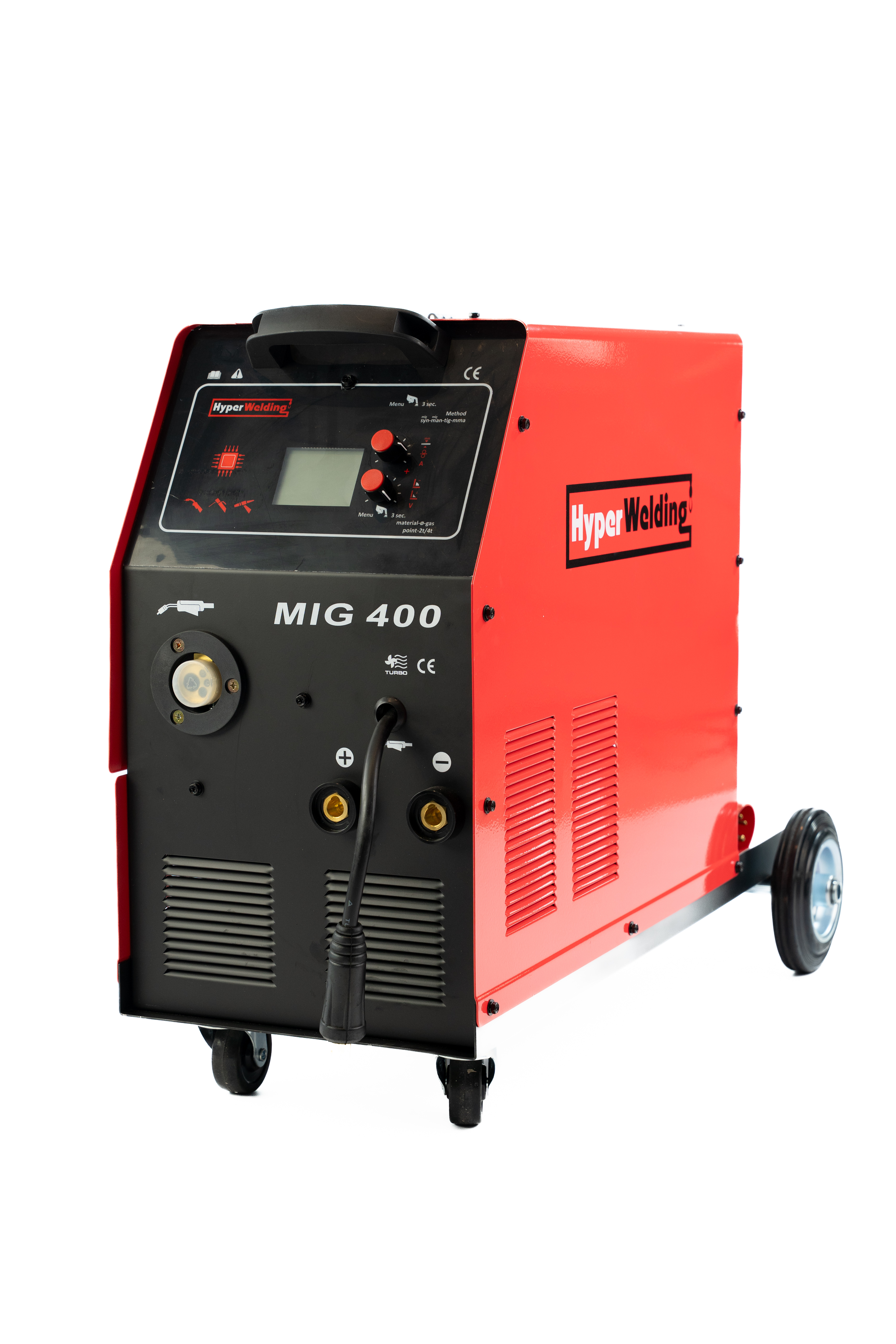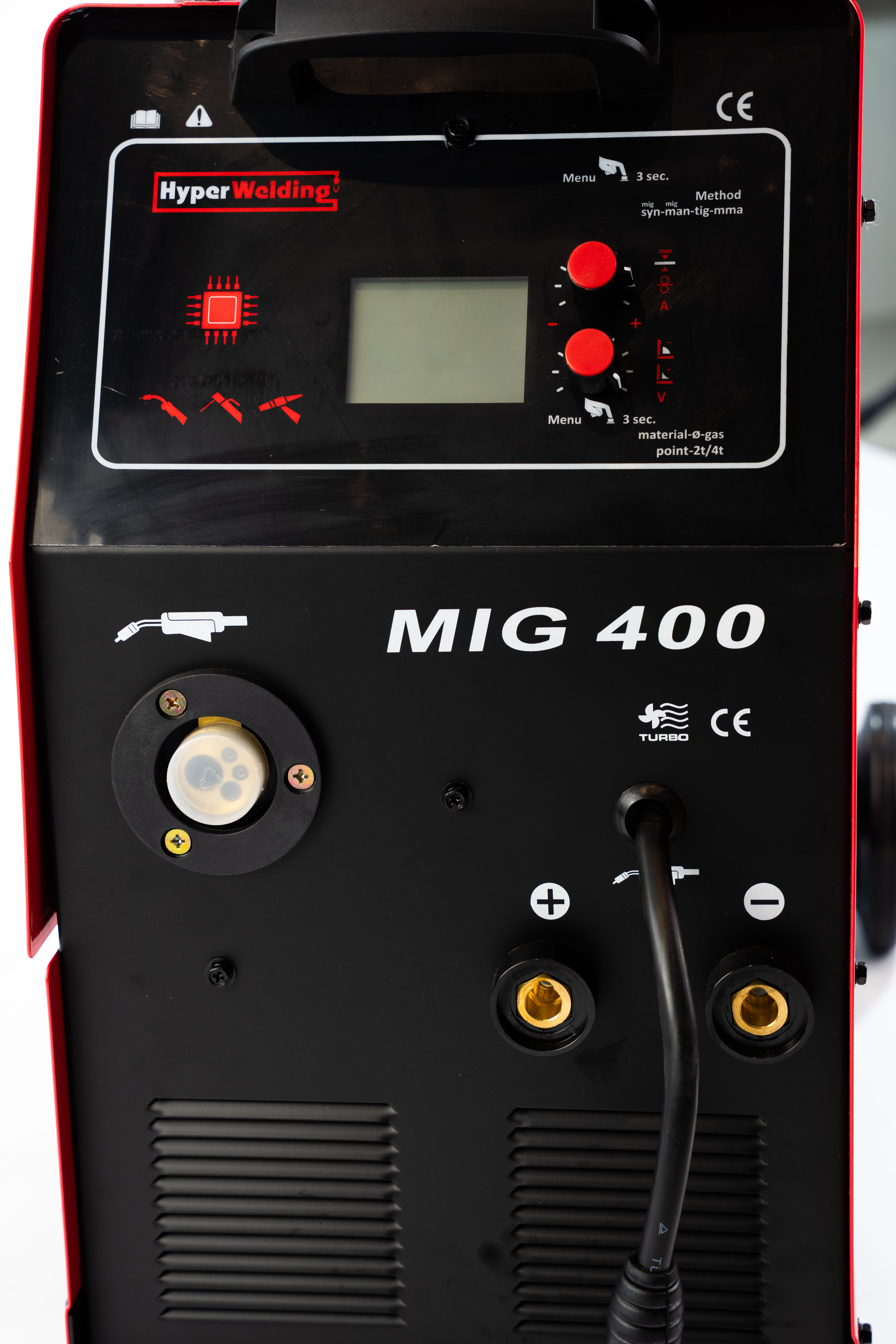 Microprocessor controlled MIG/MAG/MMA/TIG Lift inverter multi-process welding machine Flexibility in use and different materials welded (steel, stainless steel and aluminum) or brazed (galvanized sheet) allow a wide range of applications. The fast SYNERGIC control of the welding parameters and the ONE TOUCH LCD SYNERGY technology make this product easy to use MIG Flashlight, TIG Torch Electrode holder with 3m Alu. cable; Earth terminal with 3m Alu. cable