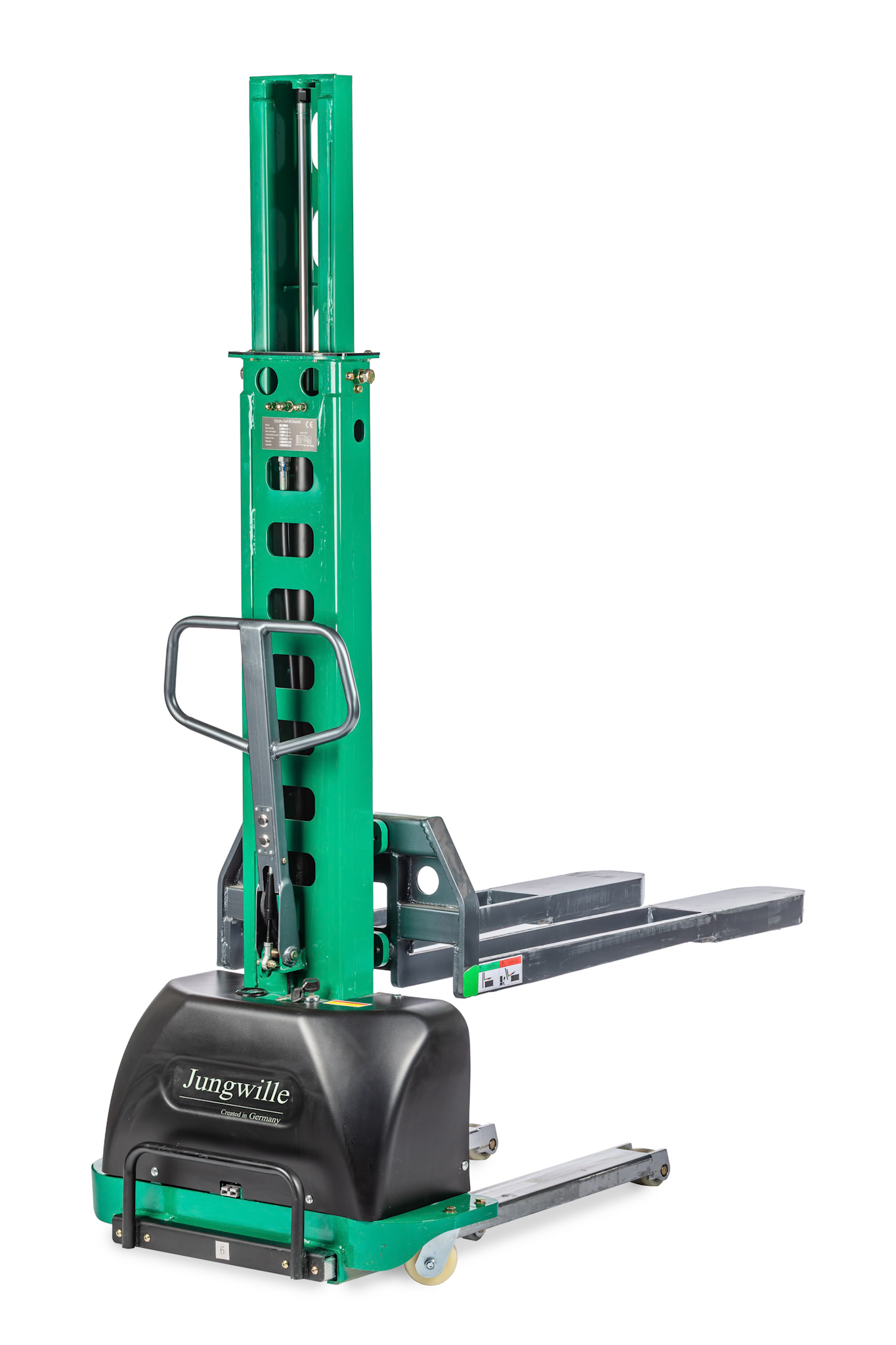 When the stacker is not needed for deliveries, it can be used perfectly as an electric high-lift stacker in the warehouse. Thanks to its robust construction, electric drive and compact dimensions, the Jungwille TVE165 offers a versatile and efficient solution for a wide range of logistics processes.