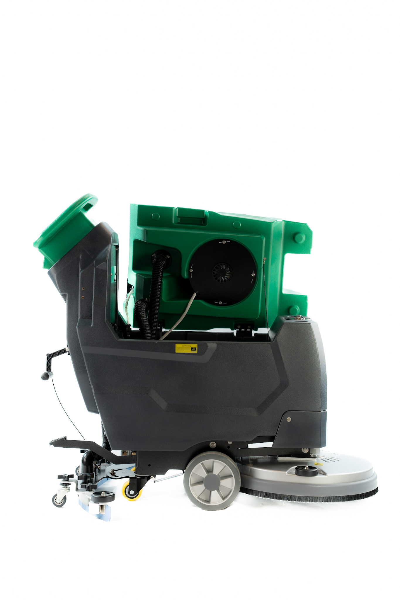 The Jungwille JW303PV is a powerful and efficient scrubbing machine, designed to provide complete control over cleaning operations. Thanks to its innovative construction, in which the motor position, insulation and air circulation are optimally integrated, the JW303PV operates exceptionally quietly. This makes the machine ideal for use in noise-sensitive environments such as offices, hospitals and hotels.