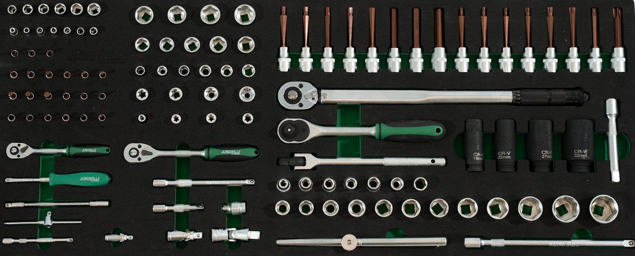 De Jungwille Imola Gereedschapswagen staat synoniem voor betrouwbaarheid en praktische bruikbaarheid, speciaal ontworpen om tegemoet te komen aan de eisen van zowel de professionele vakman als de serieuze doe-het-zelver. Met 9 zorgvuldig ontworpen lades, gevuld met een indrukwekkende collectie van 248 stuks hoogwaardig gereedschap, biedt deze gereedschapswagen een complete oplossing voor diverse klussen en projecten.