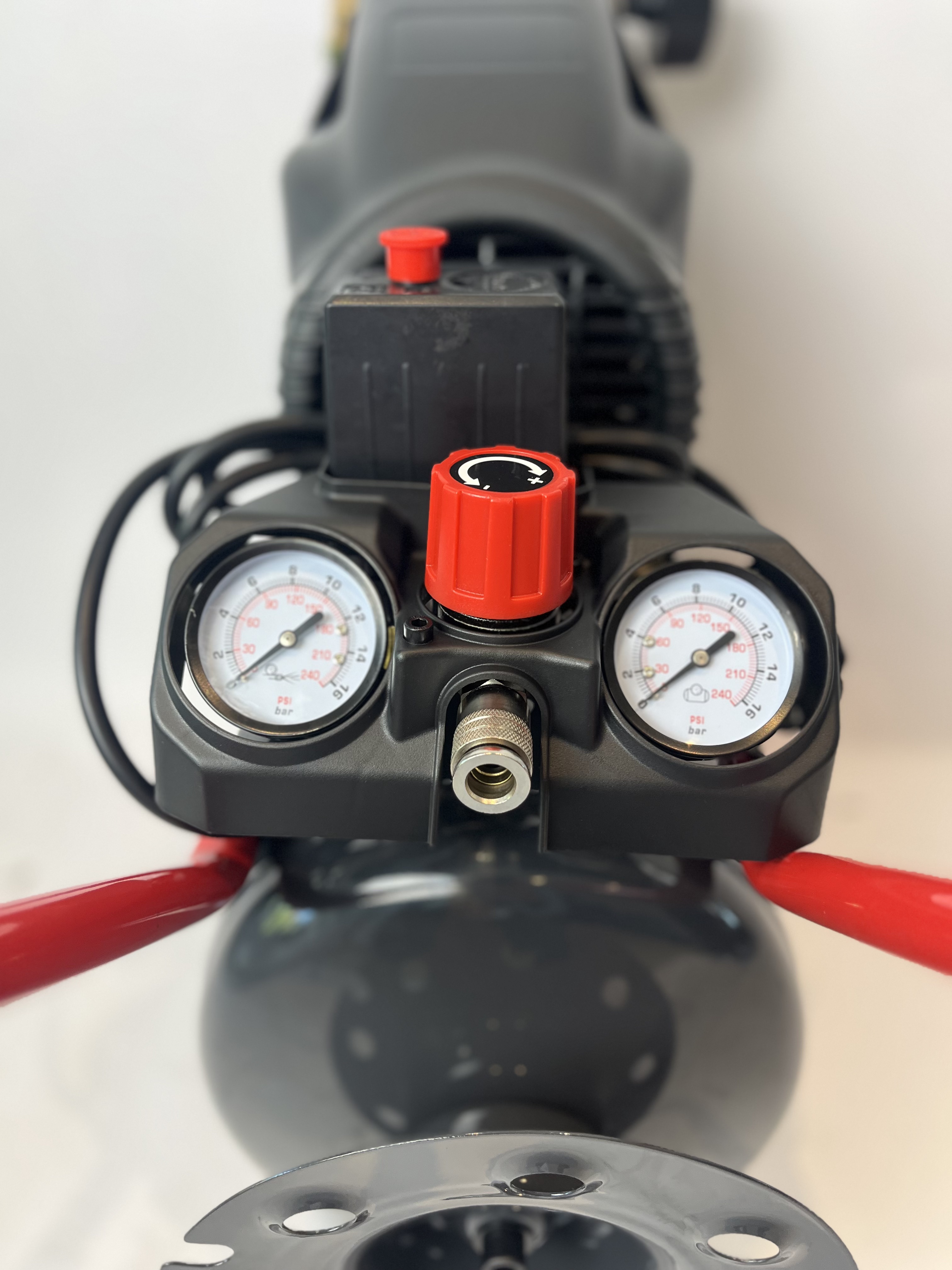 Dankzij de geïntegreerde slanghaspel heb je altijd orde in je werkruimte en blijft je luchtslang netjes opgeborgen. De robuuste bouw, grote rode transportwielen en ergonomische handgreep zorgen ervoor dat je de compressor moeiteloos kunt verplaatsen.